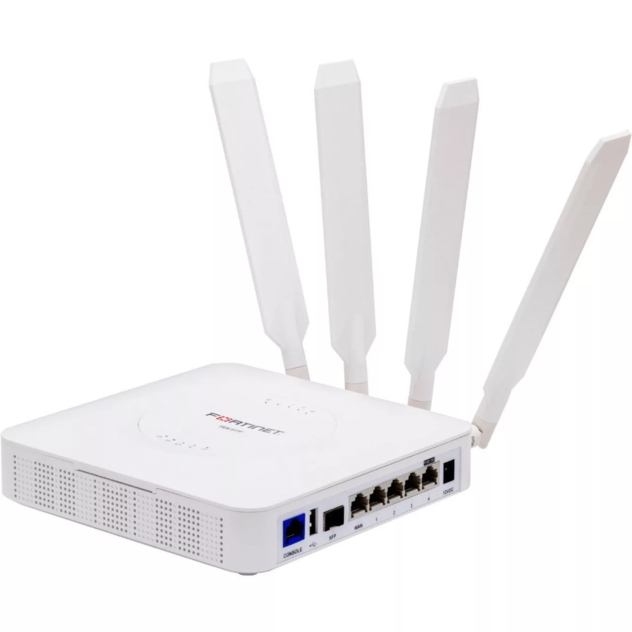 Router WAN inalámbrico de banda ancha para interiores FortiExtender-511F con 1x “Módulo M.2 Dual SIM 5G Sub-6GHz” para operadores globales, con soporte CAT20 LTE. 5x puertos GE WAN/LAN configurables RJ45 incluyendo 1x puerto 802.3at POE PD (25.5W) y 1x puerto SFP.
